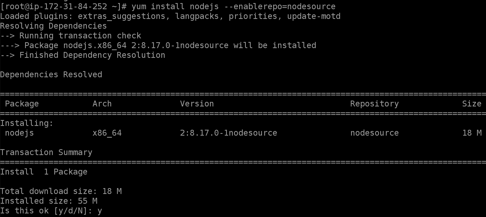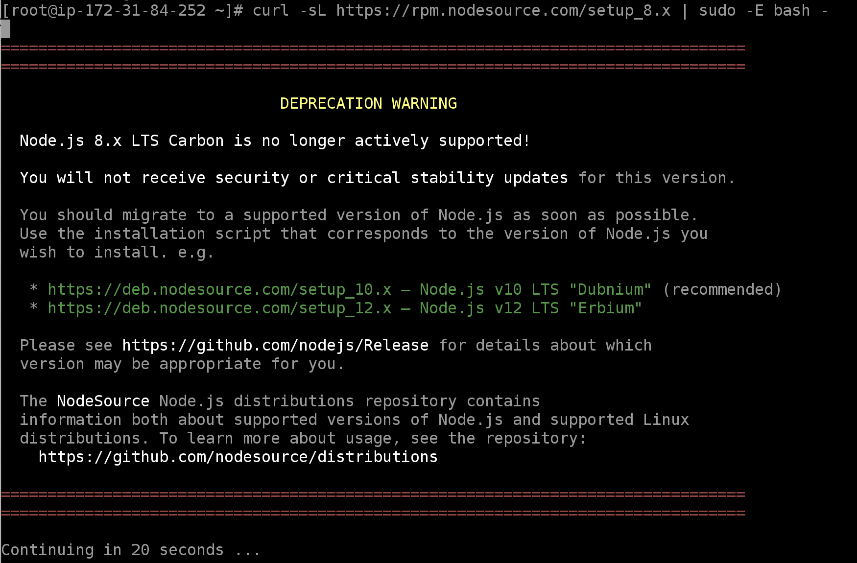 curl -sL https://rpm.nodesource.com/setup_8.x | sudo -E bash -