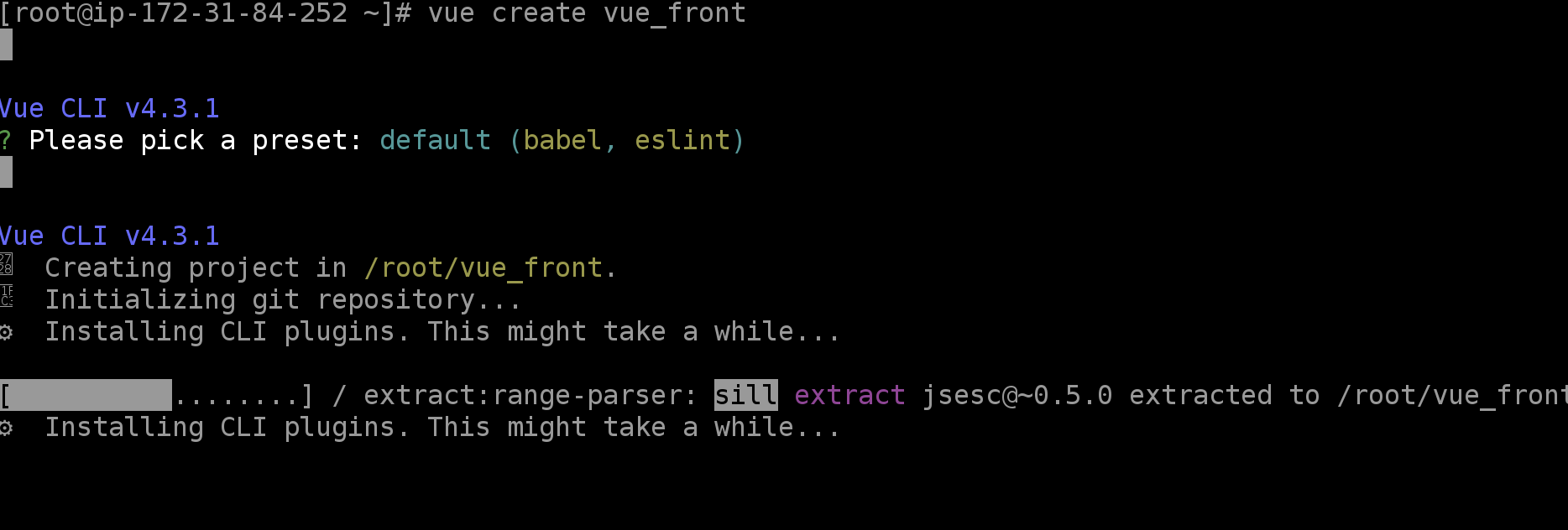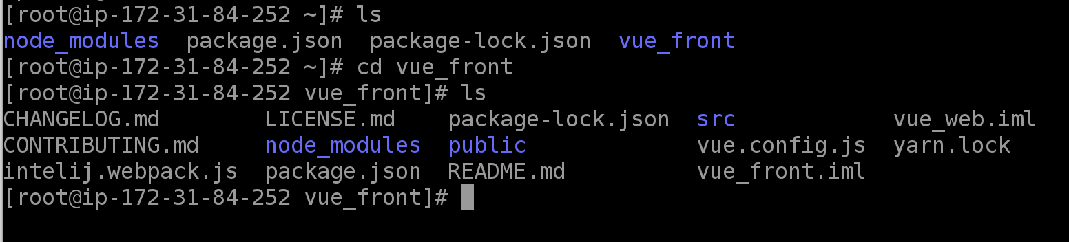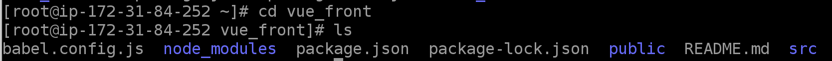 ls 명령어로 확인해보니 vue_front 도 생성되었고