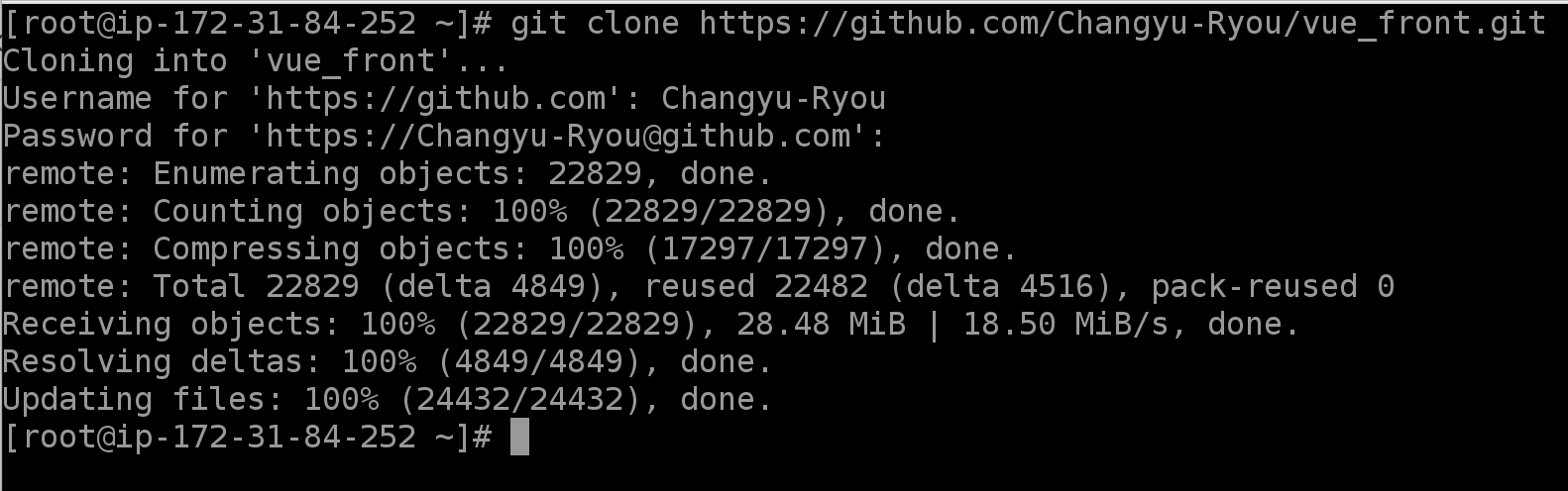 그다음은 우선 먼저 git에다가 만든 vue 프로젝트 파일을 가져올텐데요!