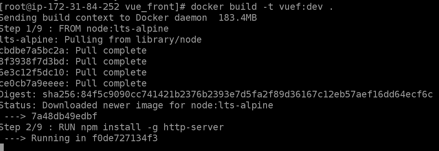 vuef 라는 이름으로 이미지를 빌드해줍니다.