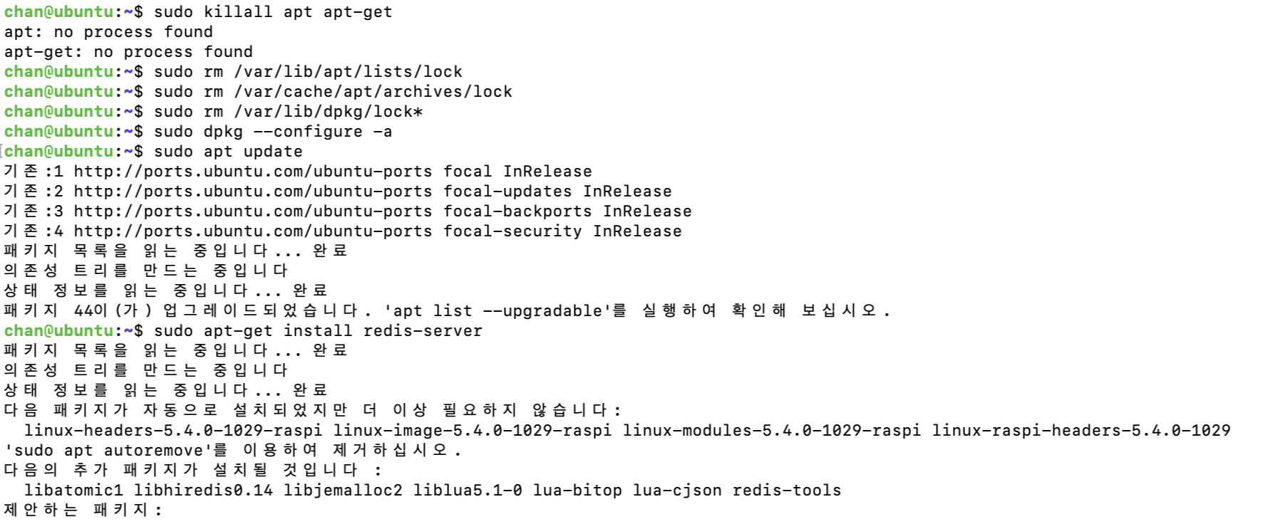 라즈베리파이에 설치한 Ubuntu에서 새로운 프로그램을 설치하려 했더니 아래와 같은 에러메시지를 확인 할 수 있었다.