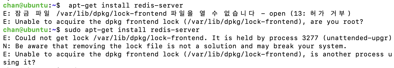 [Linux] Ubuntu Error "E: Could not get lock /var/lib/dpkg/lock-frontend. It is held by process 3277 (unattended-upgr)" 해결 방법
