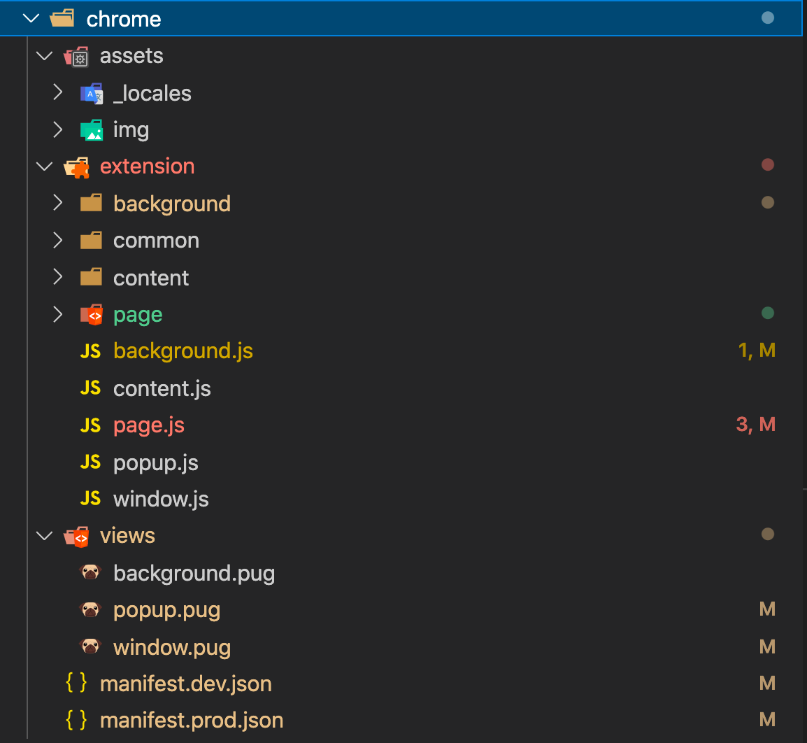 그리고 extension에는 background, common, content, page 디렉토리와 여러 js파일이 위치하는데,