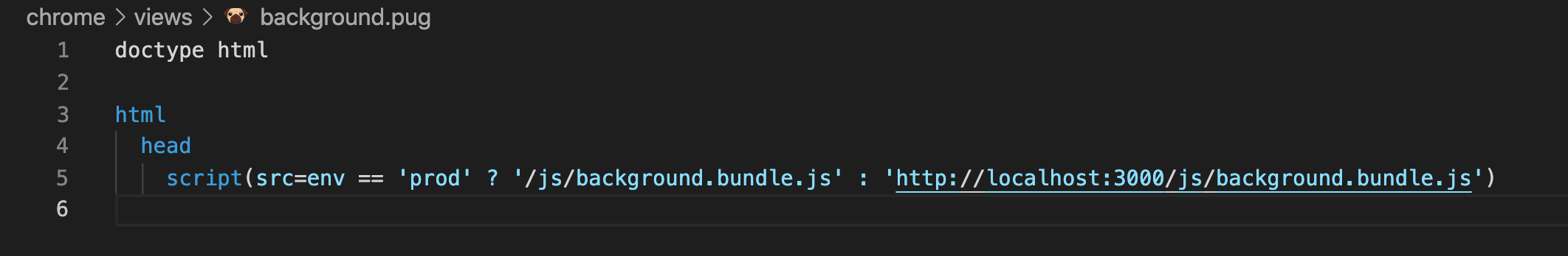 views에는 pug 파일들이 위치하는데 pug로 ui를 구현하는 방식이 아닌 위와 같이 pug로 script를 삽입(?)하는 역할만 한다.