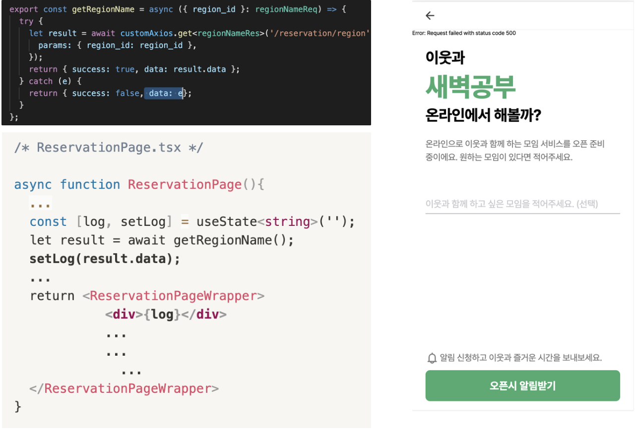 단순하게 로그만 한번 확인해보고 싶어서 API 요청 후 넘어오는 error를 div 안에 출력해 보았다.