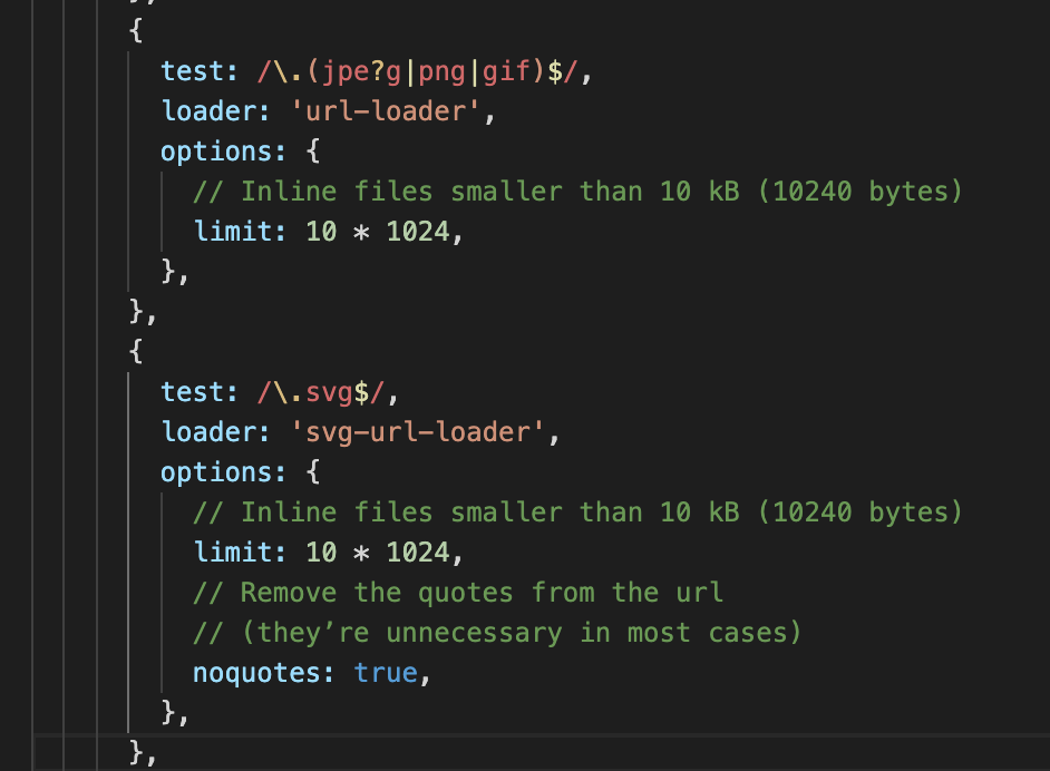 기존 file-loader로 png, svg를 번들링 했는데 url-loader와 svg-url-loader로 변경해보았다.
