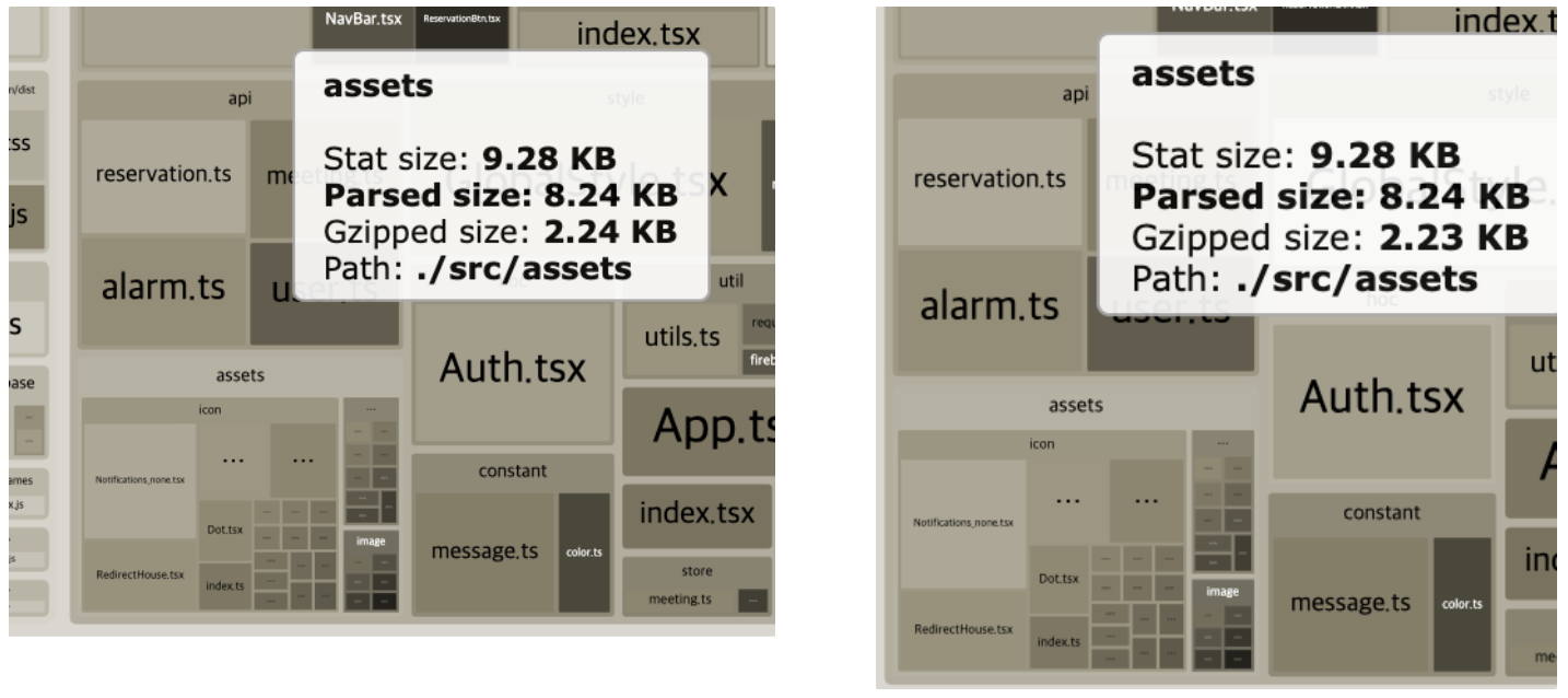 stat은 1.26mb, parsed는 559.81KB, gzipped 사이즈는 153.67KB로 줄었음을 알 수 있었습니다.