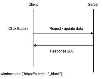 React 기반 프로덕트에서 어떤 버튼을 클릭했을 때, 서버에 data update를 요청하고 정상적으로 반영 되었을 경우 새 창을 띄우는 스펙이 있었다.