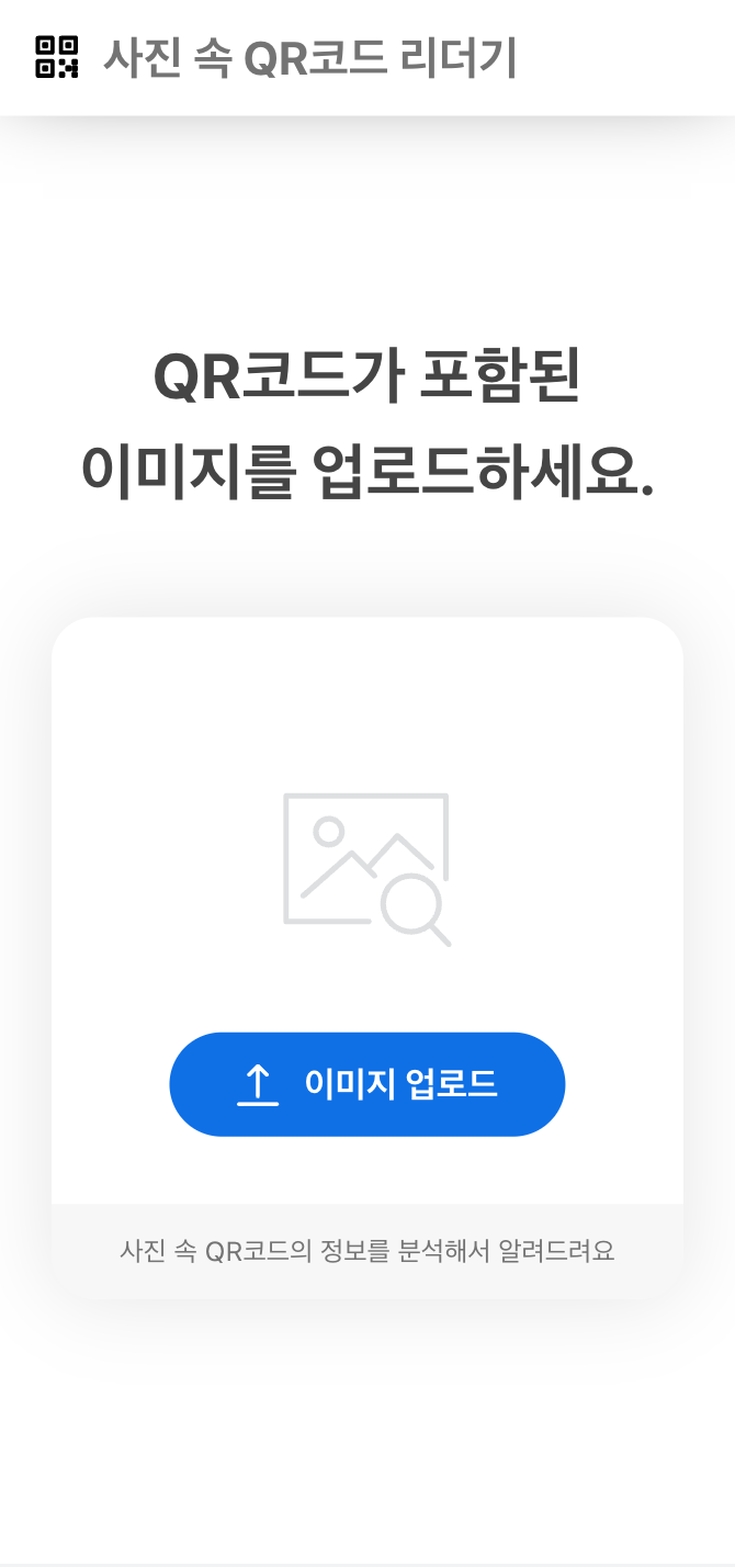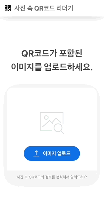 현재는 이미지 업로드 후 QR코드 라이브러리를 통해 QR코드를 인식하고, 해당 QR코드의 내용을 추출하는 기능을 제공하고 있어요.