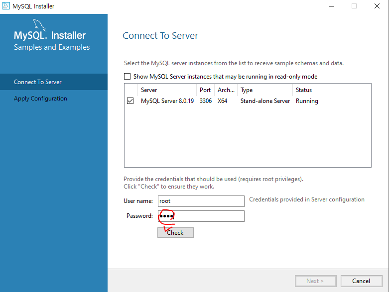 password 입력후 check..