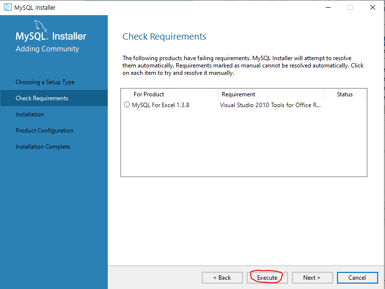 다음 화면에서 Excute를 클릭합니다.