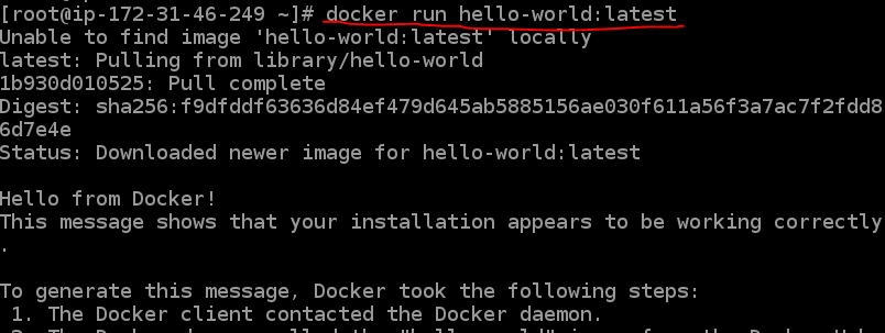 $ docker run hello-world:latest