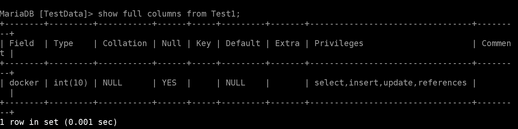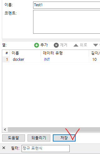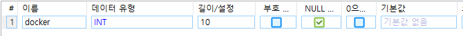 docker 라는 이름의 INT 길이 10만큼을 가진 열을 생성햇구요