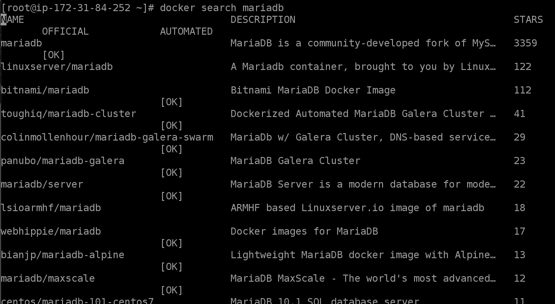 하면 mariadb 이미지 파일이 있는걸 확인했구요