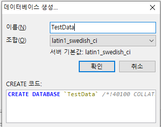 TestData 라는 이름으로 데이터 베이스를 만들어 줄게요