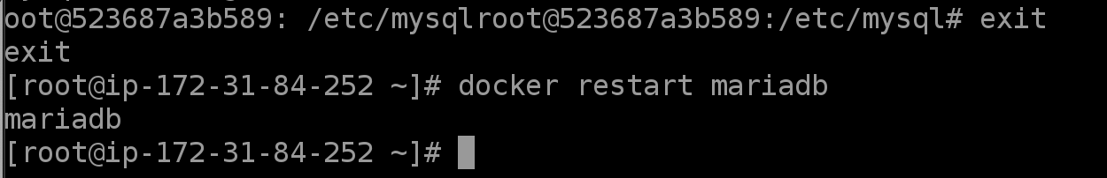 아까 말씀드렸던 docker restart mariadb 를 통해 재시작 시켜볼게요
