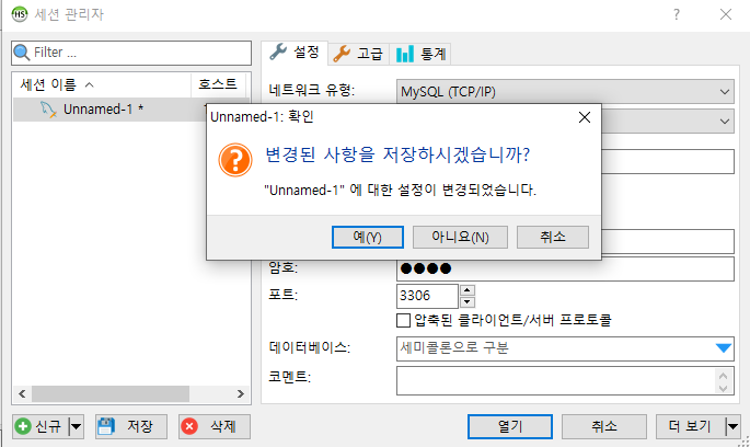 위처럼 네트워크 유형은 mySQL로 맞추고