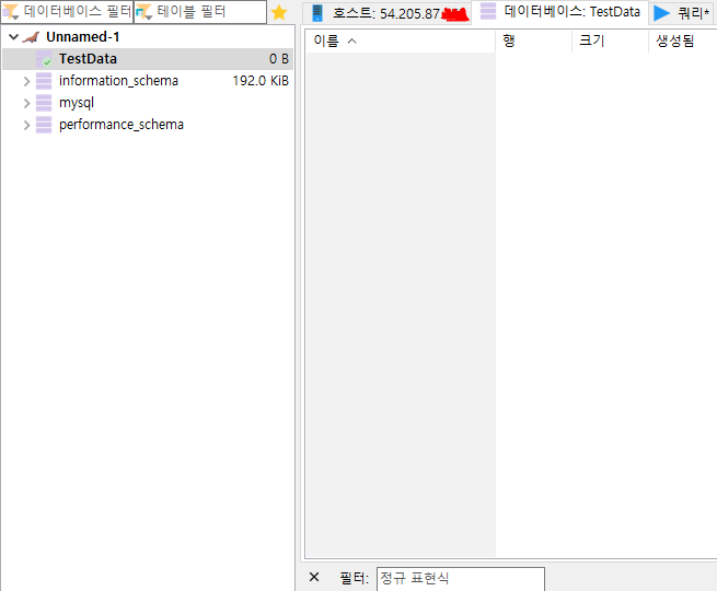 확인을 누르면 왼쪽 데이터베이스 목록에도 아래처럼 TestData 데이터 베이스가 생겼어요
